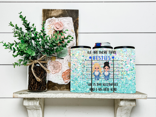 Each skinny can cooler includes a 12oz stainless skinny koozie can cooler and a black screw on top to hold in your drink. Optional screw on clear tumbler lid & straw are also available for purchase.