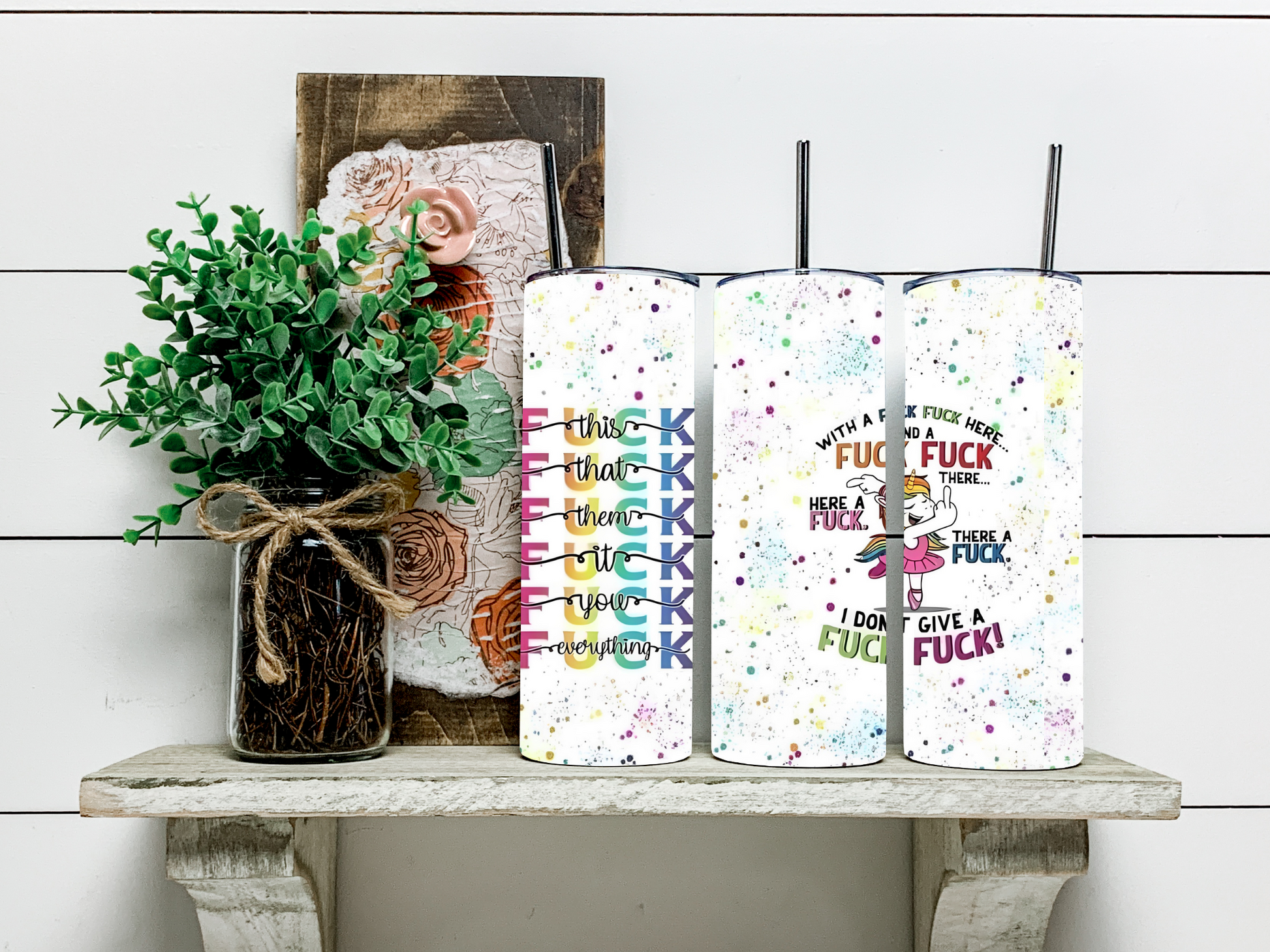 Our F*ck This, F*ck That, F*ck Them, F*ck It, F*ck You, F*ck Everything 20oz/30oz Skinny Tumbler or 35oz Skinny Duo's are double-walled and vacuum insulated which keeps your favorite beverage hot or cold for hours! Our tumblers are made from high-quality, food-grade 18/8 stainless steel and are coated in a durable finish. They also have a large cup mouth lid making it easier for you to clean.